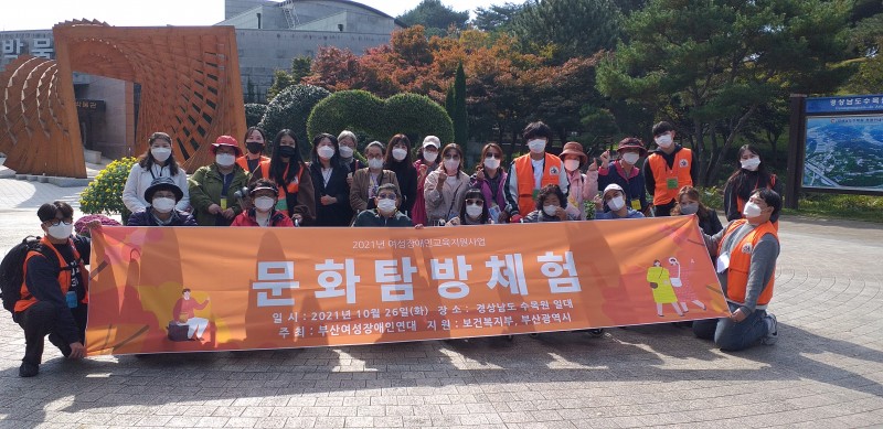* 2021년 여성장애인교육지원사업 [문화탐방체험]을 무사히 잘 다녀왔습니다* 페이지 정보 작성자 최고관리자 작성일21-10-28 13:31 조회1,001회 관련링크 이전글 다음글 목록 본문 10월 26일(화) 총 24명 경남수목원 잘 다녀왔습니다.^^날이 좋아 더욱더 즐거운 시간이었습니다.함께해주신 모든 분들께 감사드리며이번에 함께하지 못한 분들께 죄송한 말씀드리며, 내년에는 꼭 더 많은 회원님들과함께 할 수 있도록 노력하겠습니다^^감사합니다~ 이전글 다음글 목록