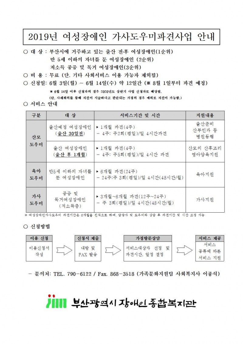 2019년 여성장애인 가사도우미파견사업 안내