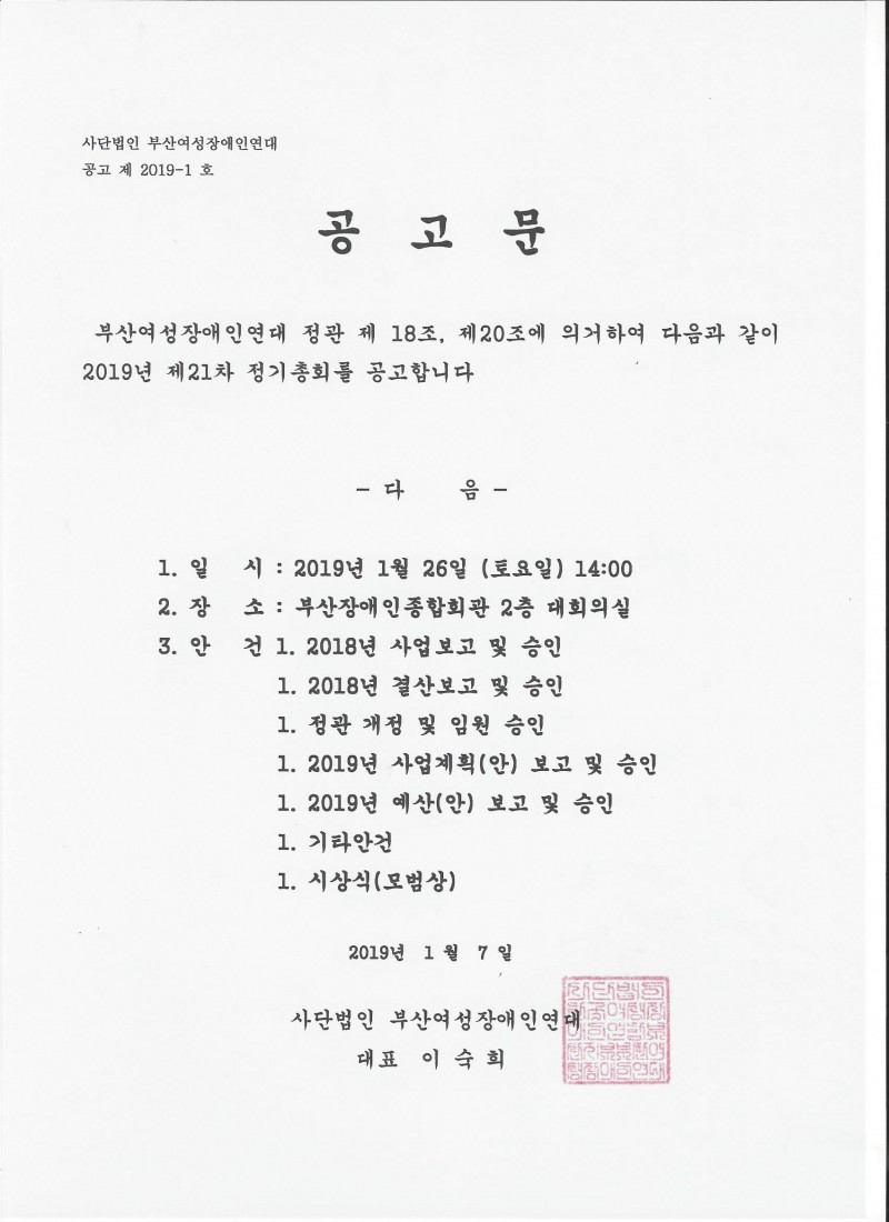 제21차 정기총회 공고