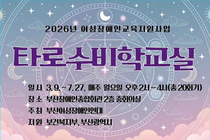 2026년 여성장애인교육지원사업 타로수비학교실 참가자 추가모집(~3/16까지)