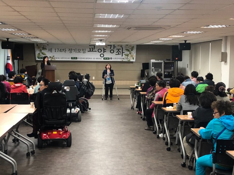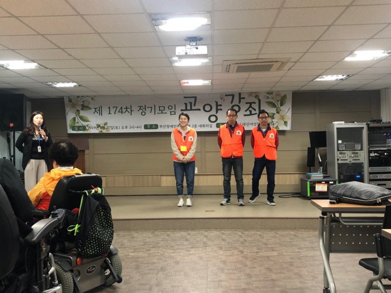 제 174차 정기모임 페이지 정보 작성자 최고관리자 작성일19-04-29 11:21 조회1,417회 관련링크 이전글 다음글 목록 본문 ○ 일 시 : 2019년 04월 27일(토) 오후 14:00∼16:00 ○ 장 소 : 부산장애인종합회관 2층 대회의실 제 174차 정기모임을 가졌습니다.귀한걸음 해주셔서 감사합니다. 교양강좌로 레크교실을 준비했는데 회원님들께서 집중도 잘해주시고호흥도 너무 좋았습니다. 간단하면서 쉽게 따라할 수 있는 건강박수부터뇌를 활성화 시키는 손유희로 힐링하는 시간이었습니다. ○항상 회원님들과 함께하는 부산여성장애인연대가 되겠습니다. 이전글 다음글 목록