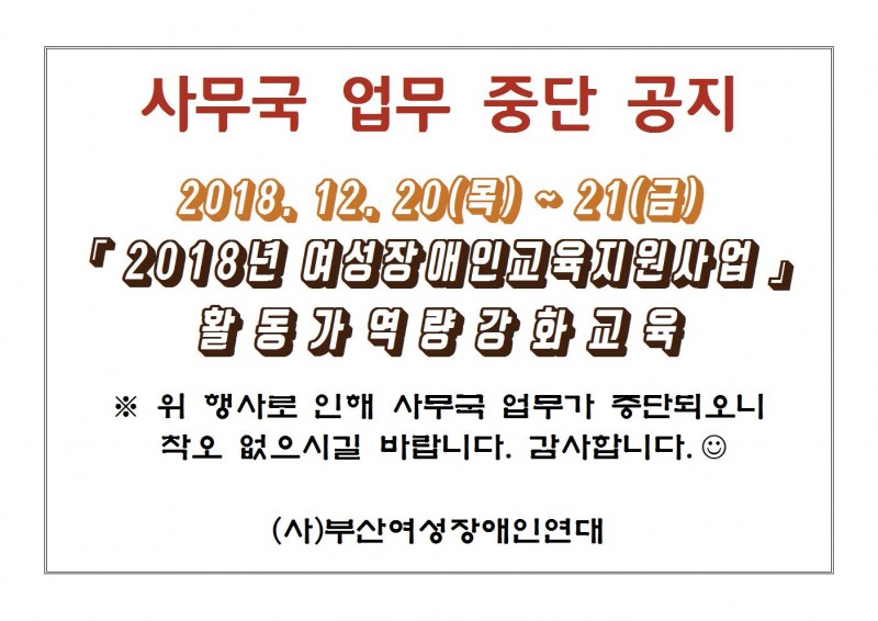 2018년 활동가역량강화교육 관련 사무국 업무 중단 공지