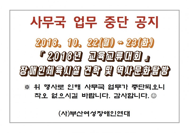 2018년 교육교류대회 관련 사무국 업무 중단 공지