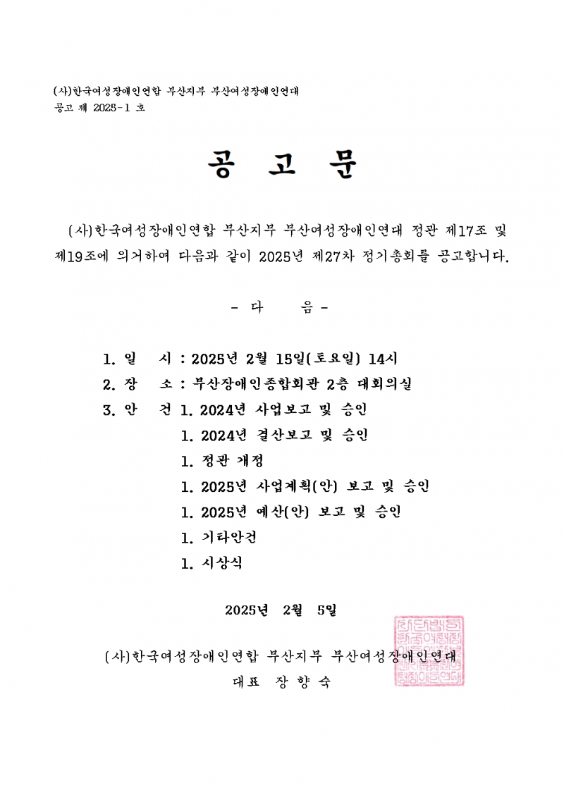 [2025년도 제27차 정기총회 안내]